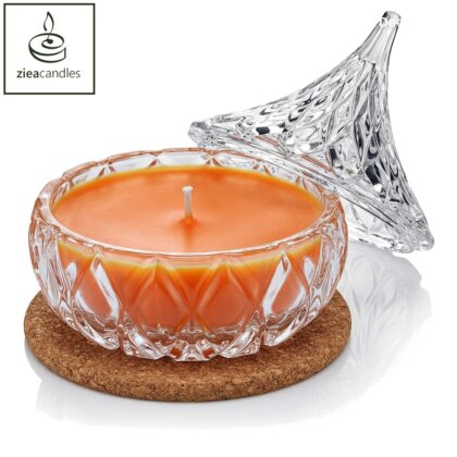 Świeca Zapachowa ZIEA, 100ml POMARAŃCZA w Krysztale | Świeca Sojowa, Czas palenia: ok. 25h, HANDMADE | z Korkową Podkładką, Seria: Cristal 100ml